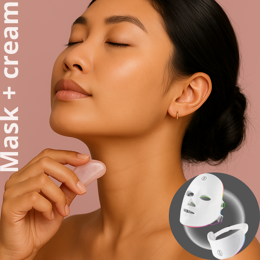Découvrez une peau éclatante grâce à notre ULTIMATE BLEND. Plus besoin de rendez-vous chez le dermatologue : quelques minutes par jour suffisent pour retrouver une peau lisse, douce et lumineuse depuis chez vous. La technologie LED stimule la régénération cellulaire, réduit les imperfections et améliore visiblement la qualité de votre peau.